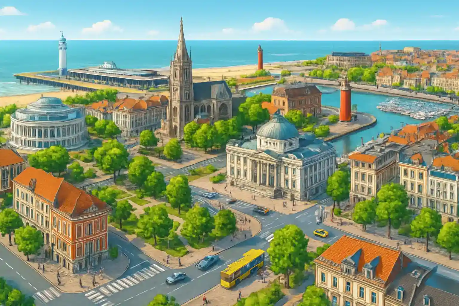 Längs kusten österut passerar du charmerande bad- och fiskebyer som Blankenberge och Zeebrugge, där Nordsjöns vida stränder bjuder på frisk havsluft. Sommarmånaderna är bäst för en tur längs kustvägen, men även höst och vår erbjuder stämningsfulla upplevelser längs den vindpinade belgiska kusten.