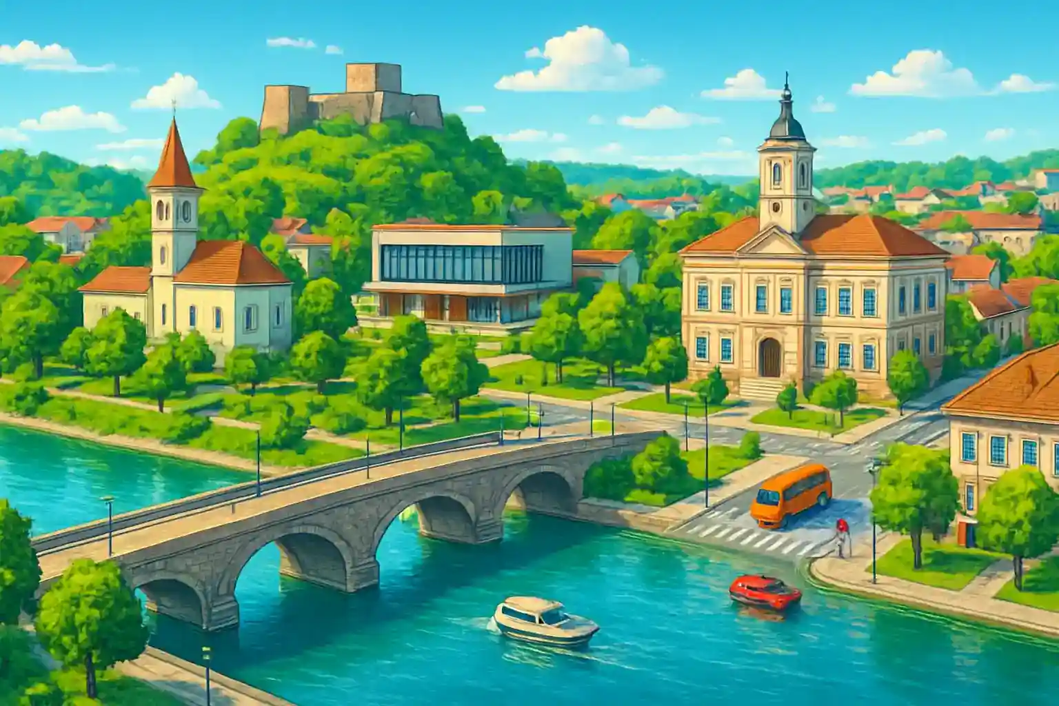 Hyr bil i Šamac centrum och utforska norra Bosnien och Hercegovina med full frihet. Staden ligger vid floden Sava och gränsar direkt mot Kroatien, vilket gör den till en utmärkt utgångspunkt för gränsöverskridande resor. Med bil når du Doboj på cirka 45 km och Tuzla på ungefär 90 km.