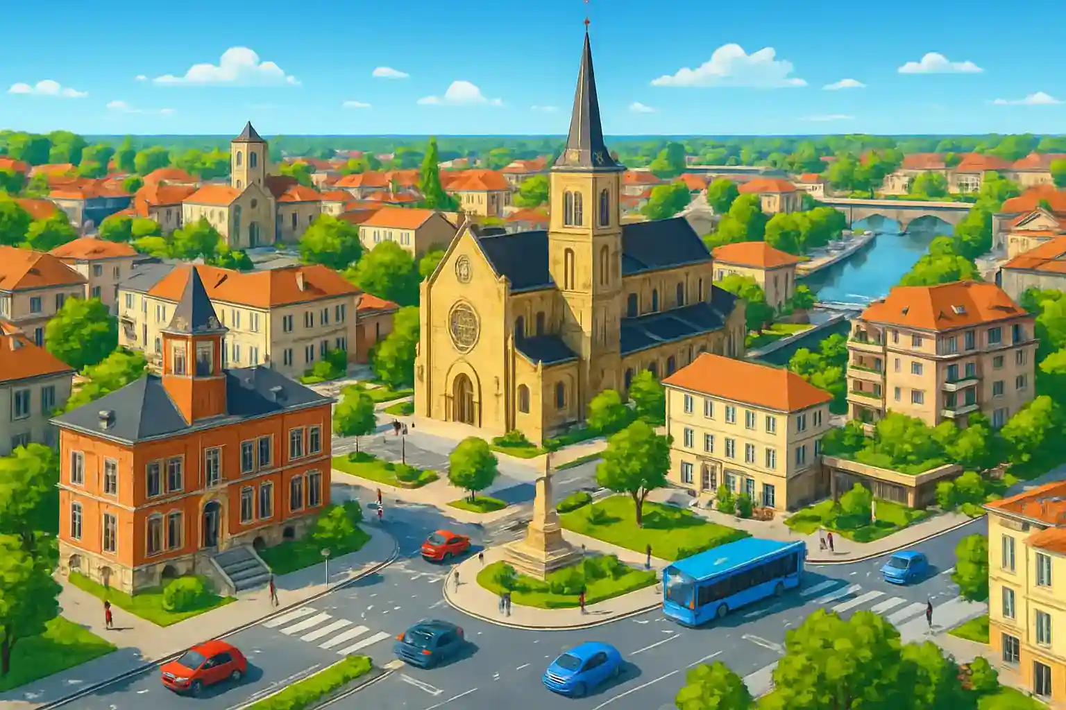 Hyr bil i Jarny centrum och utforska Lorraine-regionen med dess rika industrihistoria och natursköna landskap. Staden ligger nära A4 och ger snabb access till Metz, 30 km österut på 25 minuter. Verdun, ett historiskt måste, nås på 45 km västerut.