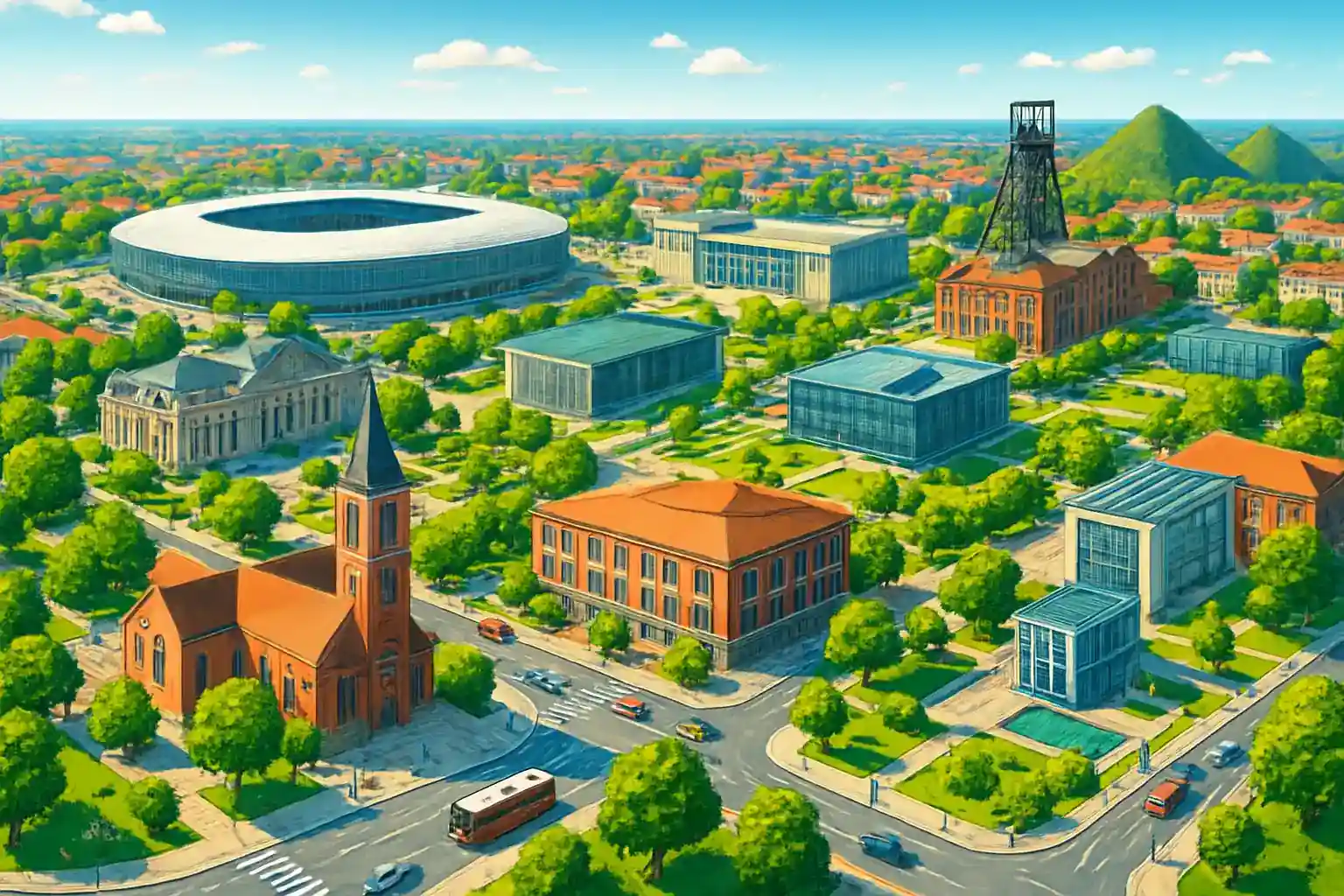 Lens centrum har 7 biluthyrare och är navet för att utforska norra Frankrikes industrihistoria och kulturarv. Staden är världskänd för Louvre-Lens, satellitrummet till Louvren i Paris, som öppnade 2012 och lockar hundratusentals besökare. Lille ligger 35 km norrut och nås på 30 minuter via A21.