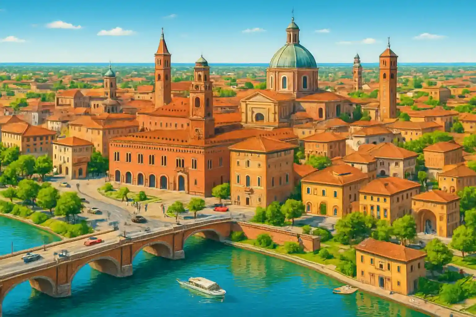 Söderut lockar Parma med sin berömda matkultur på drygt en timme via A22 och A1. Området är som vackrast på våren och hösten när dimman lättar och vingårdarna i Valpolicella och Lambrusco-trakterna glöder i varma färger.