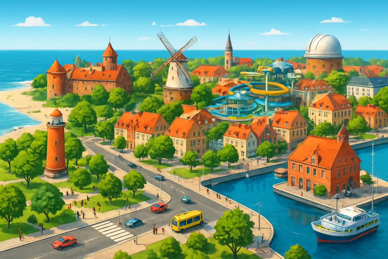 Ventspils är Lettlands viktigaste hamnstad och ett populärt resmål med sin välskötta strandpromenad, slott och unika ko-skulpturer. Med 3 uthyrare i centrum har du goda möjligheter att utforska Kurzeme-regionen med bil. Ventspils ligger 190 km nordväst om Riga och nås på ca 2,5 timmar via A10/E22.