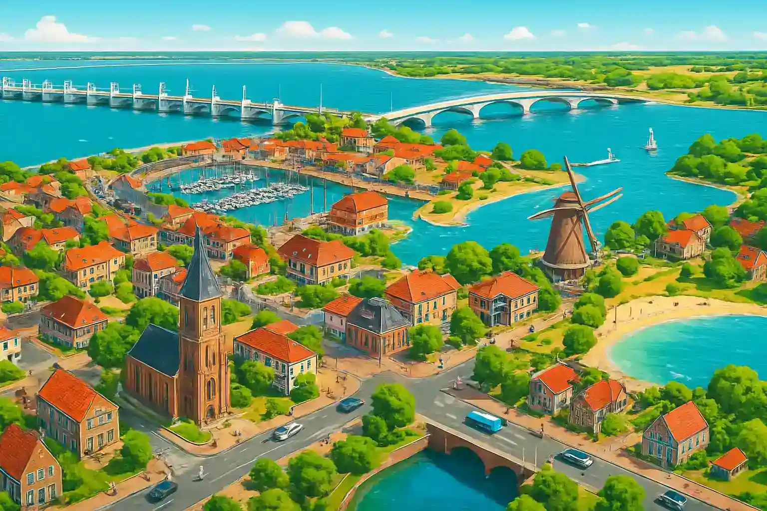 Hyr bil för att köra Zeelandbron (5,02 km lång) mot Zierikzee – en imponerande upplevelse med havsutsikt. Besök Neeltje Jans, Deltawerken-museet, 15 km österut för att förstå Zeelands kamp mot havet. Undvik helger i juli–augusti då semestertrafiken på N256 kan skapa köer.
