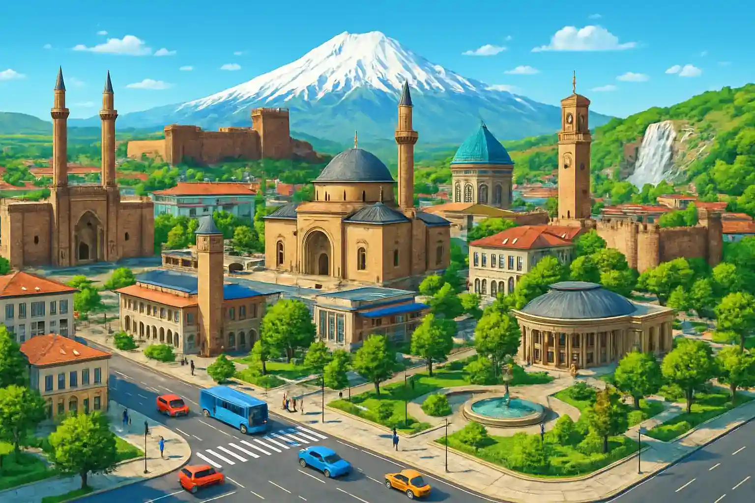 Från flygplatsen tar det ungefär 20 minuter att köra in till Erzurum centrum via E80. Palandöken skidort ligger bara 18 km sydost om flygplatsen, perfekt för en direktkörning utan omväg via stan. Boka vinterdäck om du reser november–april – vägar på 2 000 meters höjd kan vara isiga.