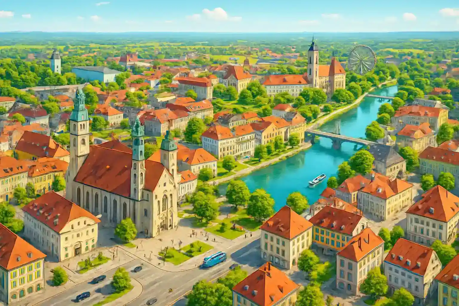 Kempten ligger vid floden Iller och omges av alpina föralperna. Stadens centrum med Residenzplatz och Basilika St. Lorenz är väl värt ett besök.