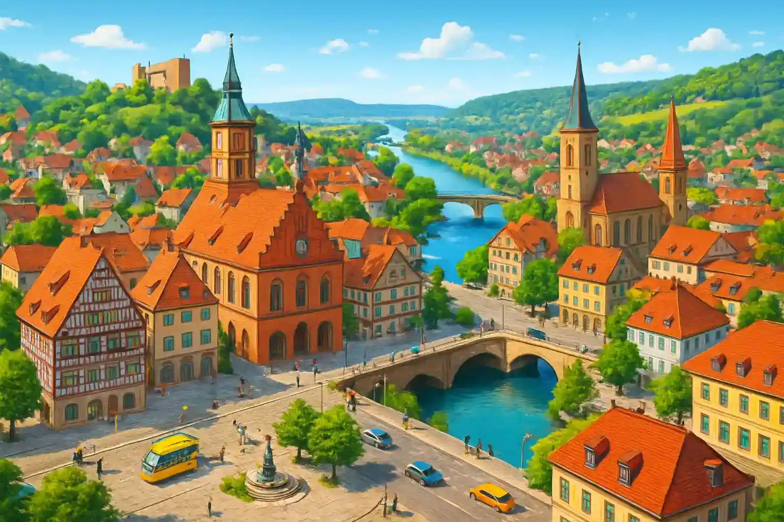Hur långt är det från Mosbach till Heidelberg? Ca 45 km via B37 längs Neckar, tar ungefär 40–50 minuter. Finns det motorvägsanslutning nära Mosbach?