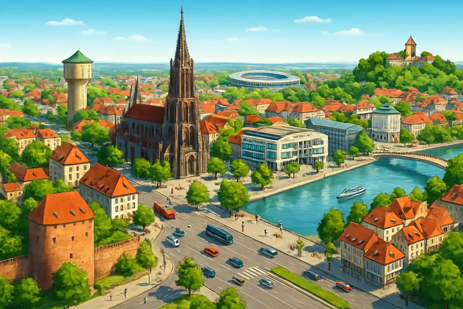 Neu-Ulm och Ulm bildar tillsammans en tvåstadsregion med Donau som naturlig gräns. Edwin Scharff Museum och Glacis-parken är lokala sevärdheter. Legoland Deutschland i Günzburg ligger bara 30 km österut via A8 – ett populärt utflyktsmål för familjer.