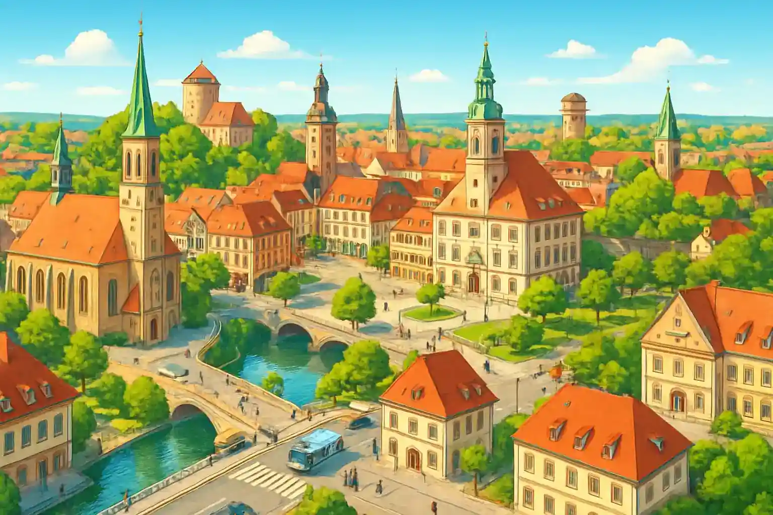 Kör till Cheb i Tjeckien (35 km, 30 min) för shopping och utflykt – kontrollera gränsregler för hyrbilen. Utforska Naturpark Oberpfälzer Wald – Tröbes och Windischeschenbach nås på 15–20 minuter. Hur långt är det från Weiden till Nürnberg?