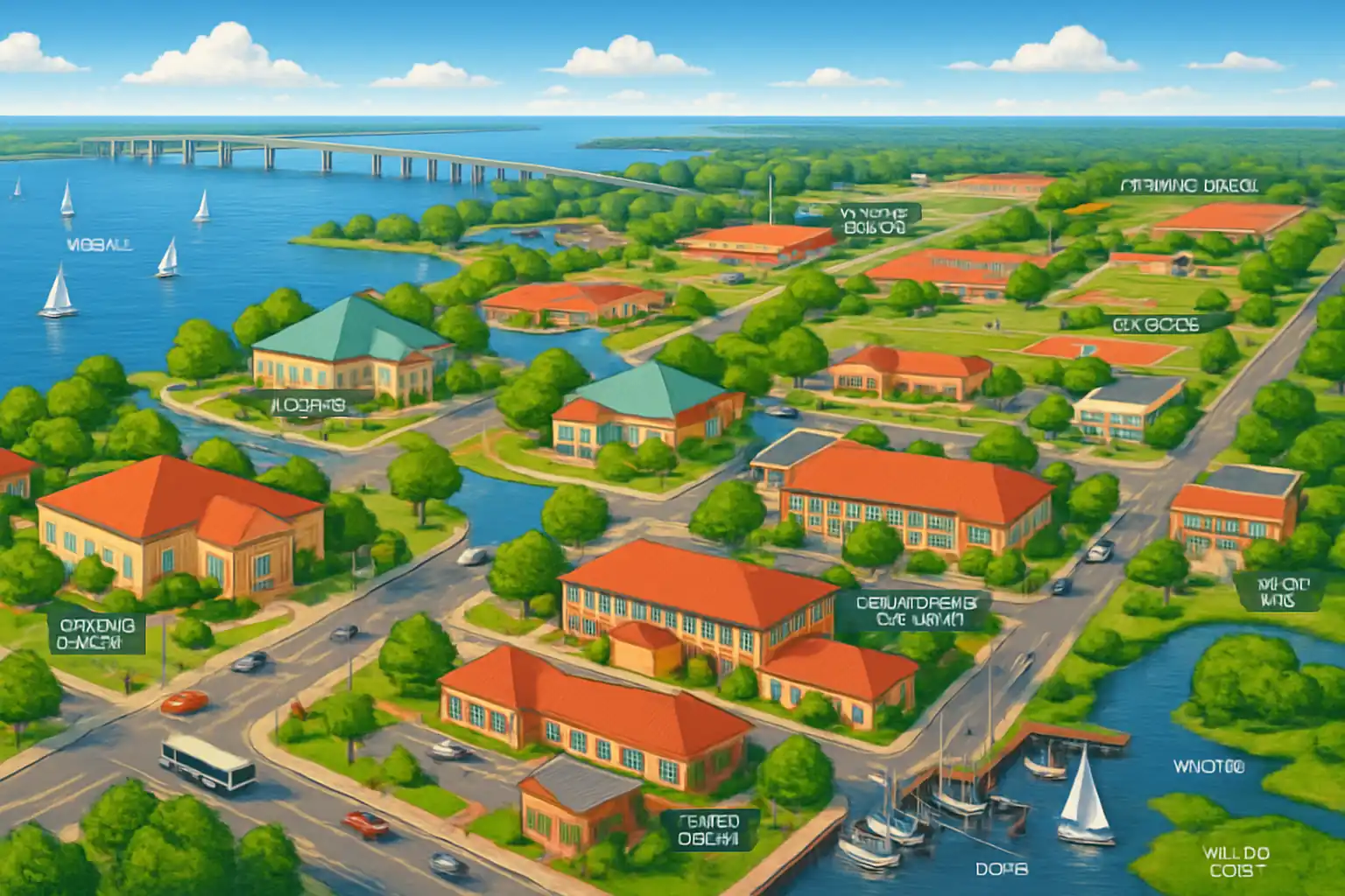Hyr bil i Daphne centrum och utforska Eastern Shore vid Mobile Bay med full frihet. Daphne ligger ca 30 km öster om Mobile via Causeway och erbjuder en avslappnad startpunkt för utflykter längs Alabamas Gulf Coast. Med hyrbil når du Gulf Shores strand på ca 75 km och Pensacola i Florida på 90 km.